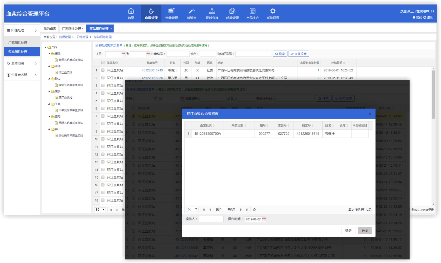 通過中間層實現廠家和漿站實時同步,廠家陽性和漿站陽性通過中間層實時鎖定獻漿員和相應的血漿,保證原料的安全。